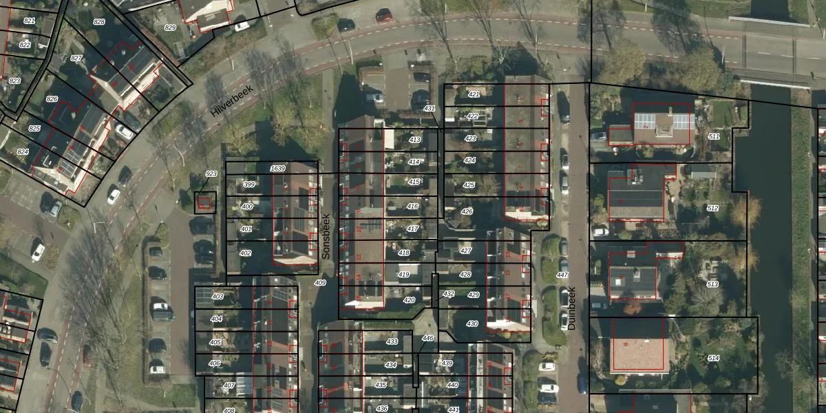 Gebruik de zoekbalk of klik op een perceel om informatie over het perceel te bekijken.