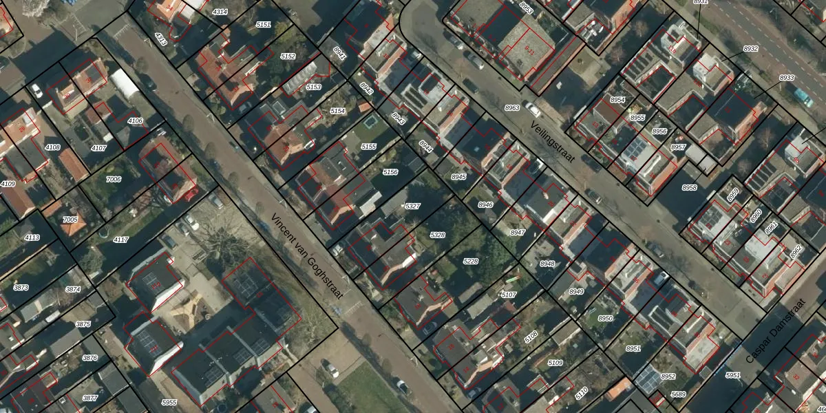 Gebruik de zoekbalk of klik op een perceel om informatie over het perceel te bekijken.