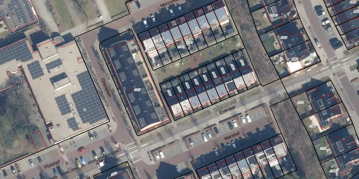 Gebruik de zoekbalk of klik op een perceel om informatie over het perceel te bekijken.