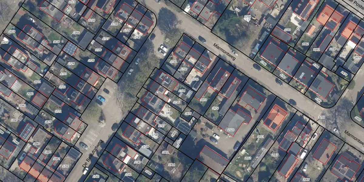 Gebruik de zoekbalk of klik op een perceel om informatie over het perceel te bekijken.