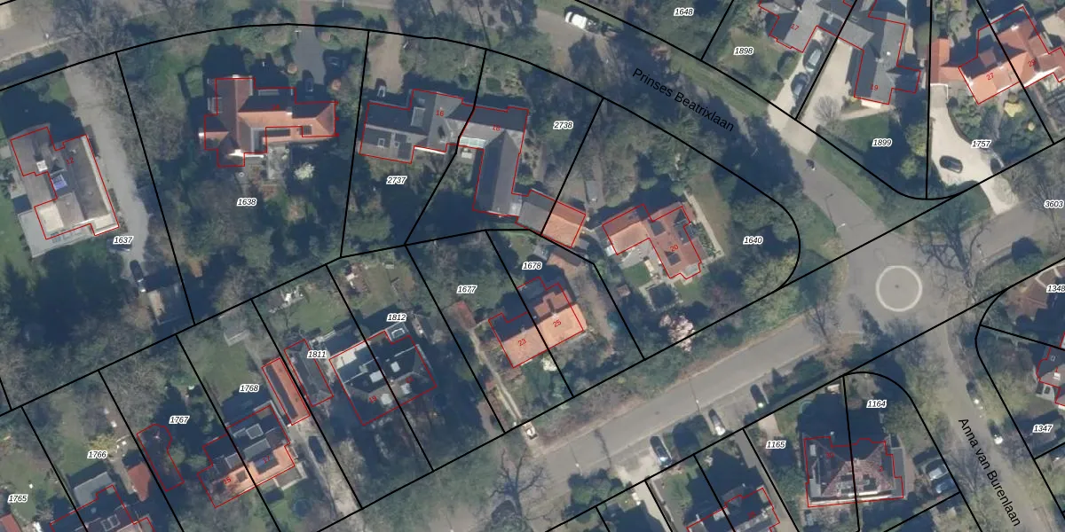 Gebruik de zoekbalk of klik op een perceel om informatie over het perceel te bekijken.