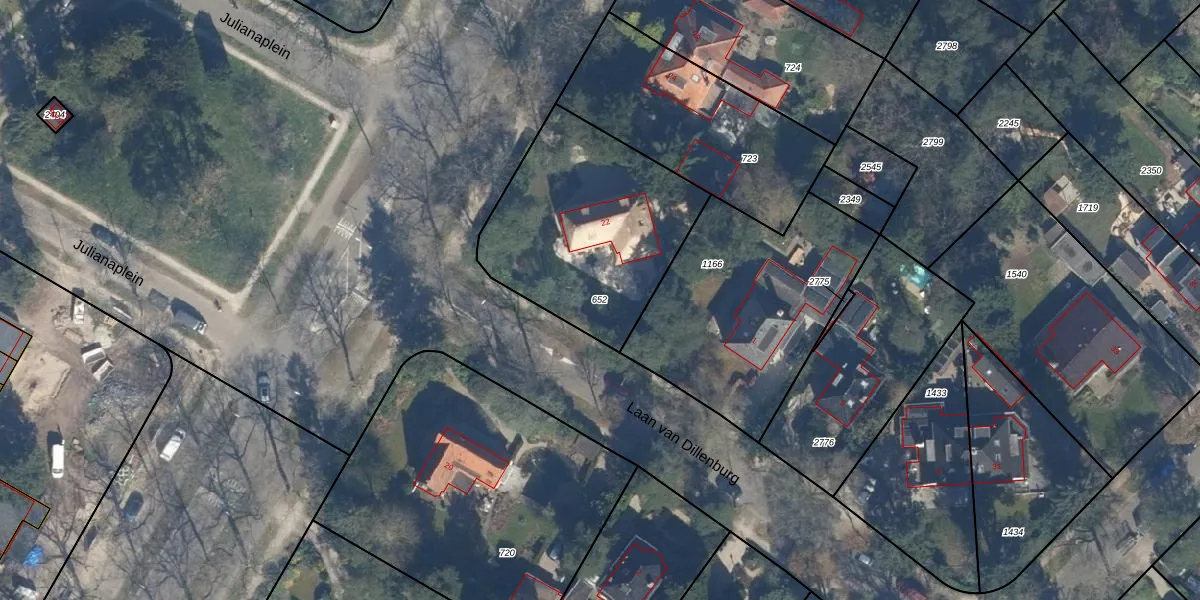 Gebruik de zoekbalk of klik op een perceel om informatie over het perceel te bekijken.