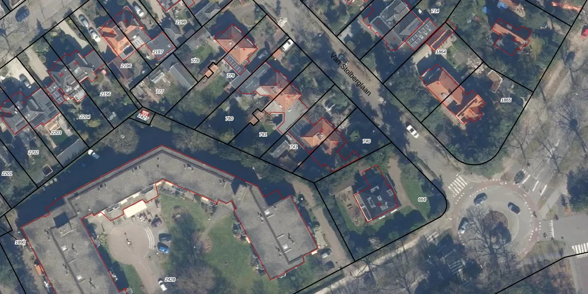Gebruik de zoekbalk of klik op een perceel om informatie over het perceel te bekijken.