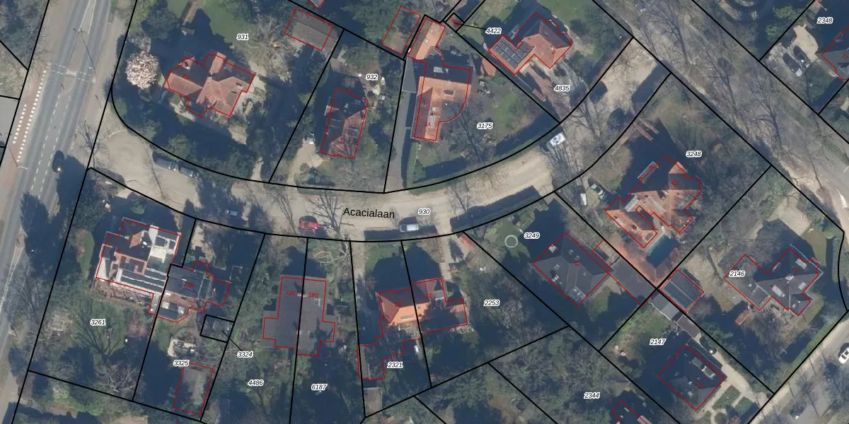 Gebruik de zoekbalk of klik op een perceel om informatie over het perceel te bekijken.