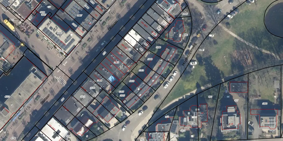 Gebruik de zoekbalk of klik op een perceel om informatie over het perceel te bekijken.
