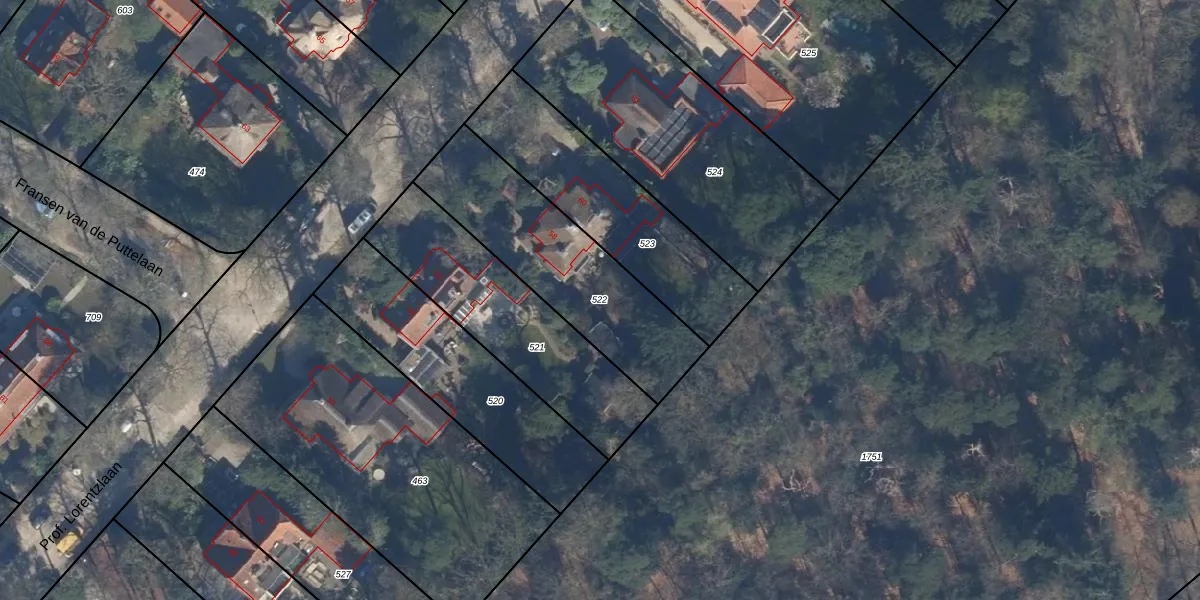 Gebruik de zoekbalk of klik op een perceel om informatie over het perceel te bekijken.