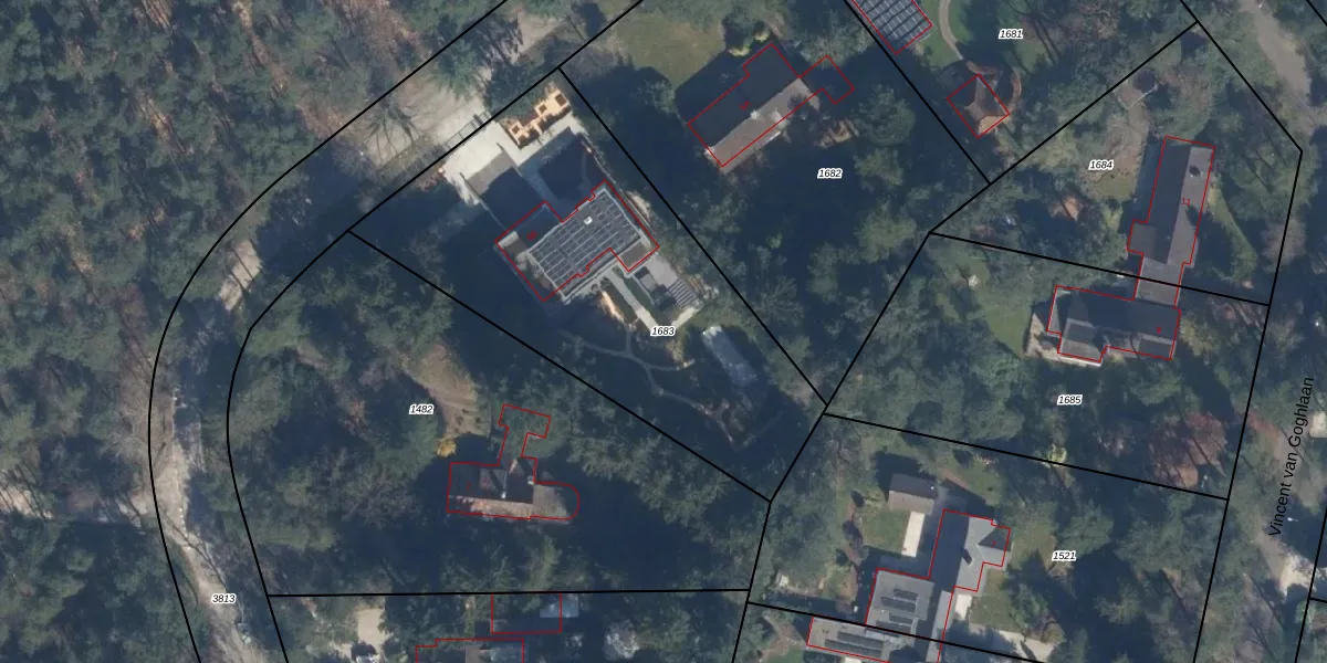 Gebruik de zoekbalk of klik op een perceel om informatie over het perceel te bekijken.