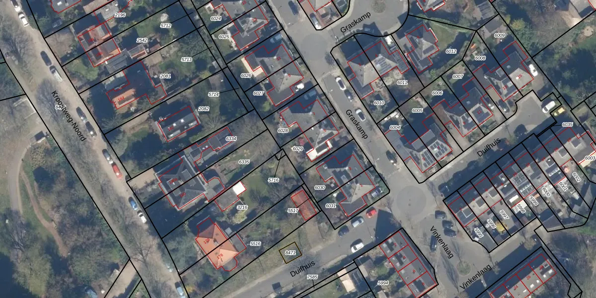 Gebruik de zoekbalk of klik op een perceel om informatie over het perceel te bekijken.