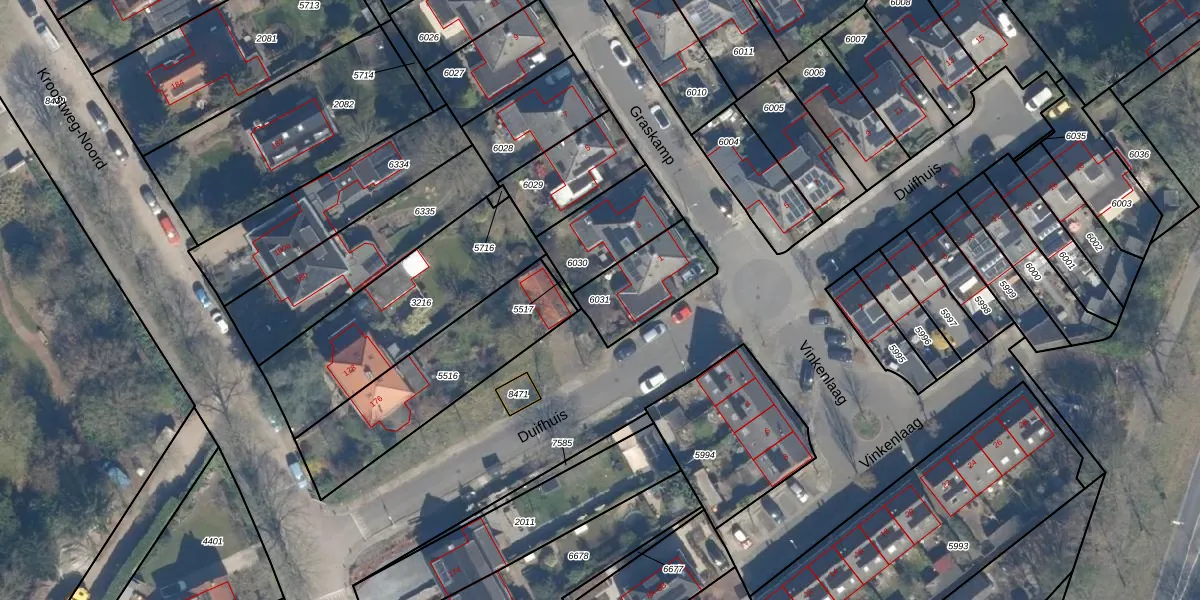 Gebruik de zoekbalk of klik op een perceel om informatie over het perceel te bekijken.