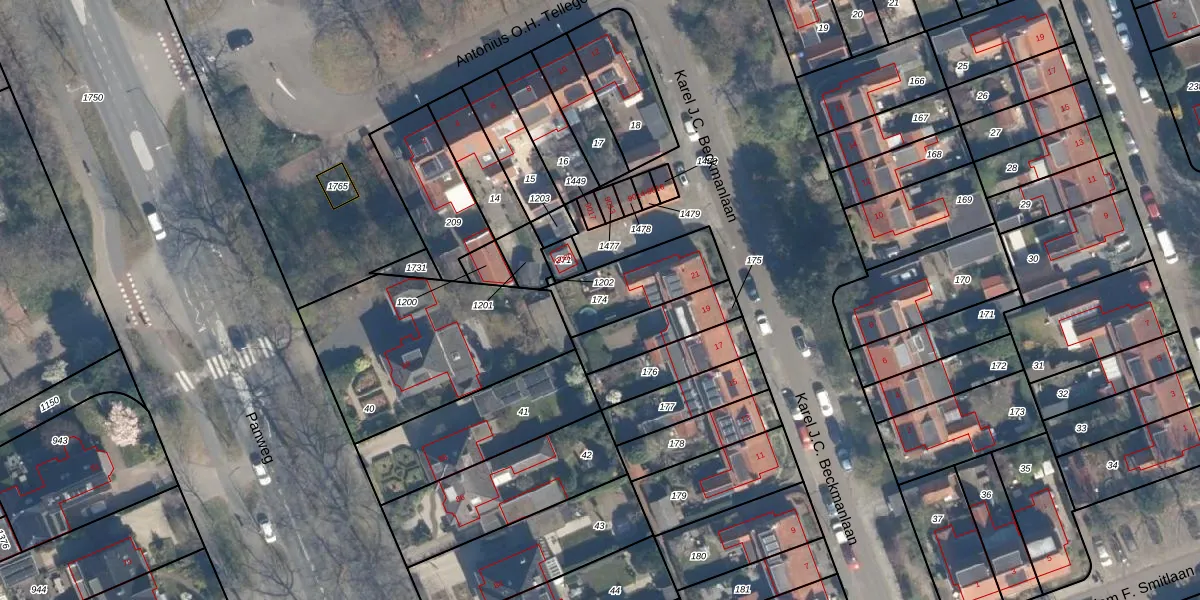Gebruik de zoekbalk of klik op een perceel om informatie over het perceel te bekijken.