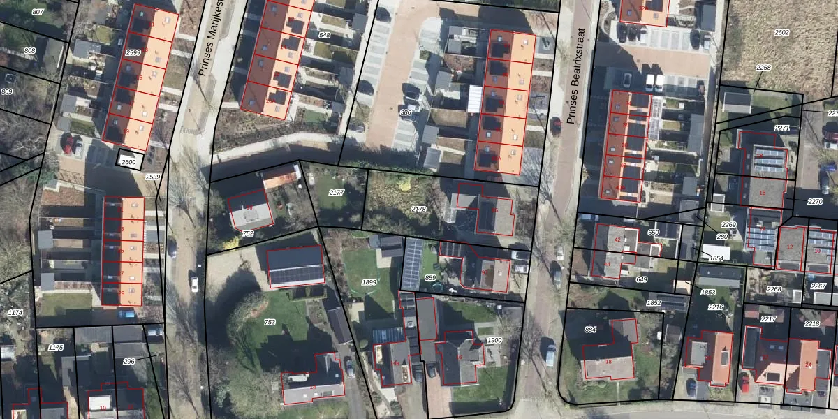 Gebruik de zoekbalk of klik op een perceel om informatie over het perceel te bekijken.
