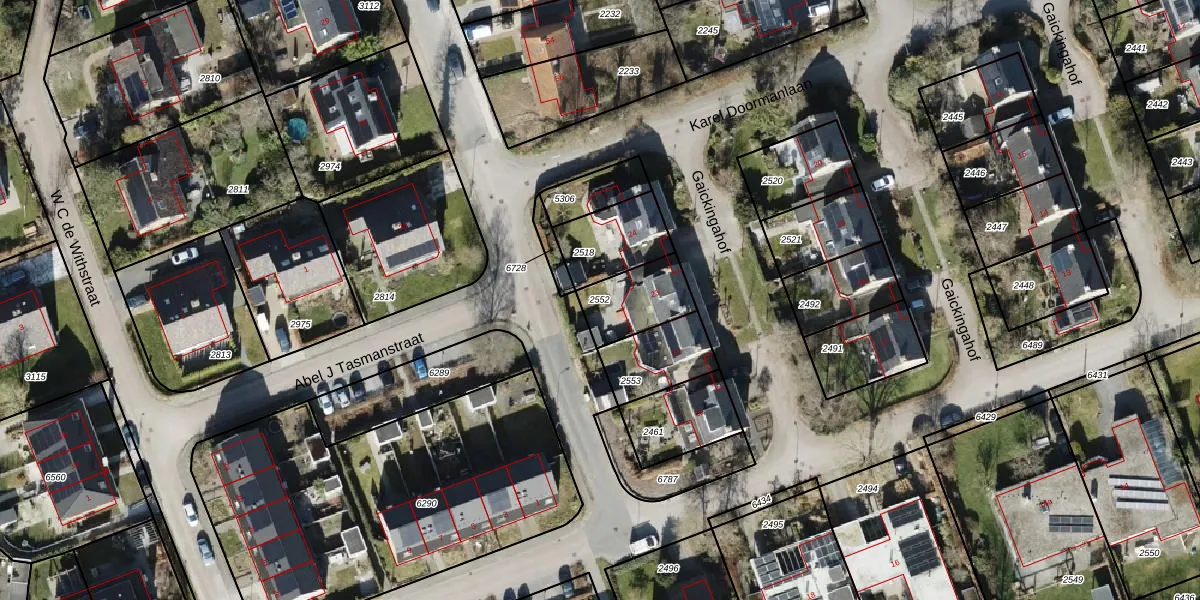 Gebruik de zoekbalk of klik op een perceel om informatie over het perceel te bekijken.