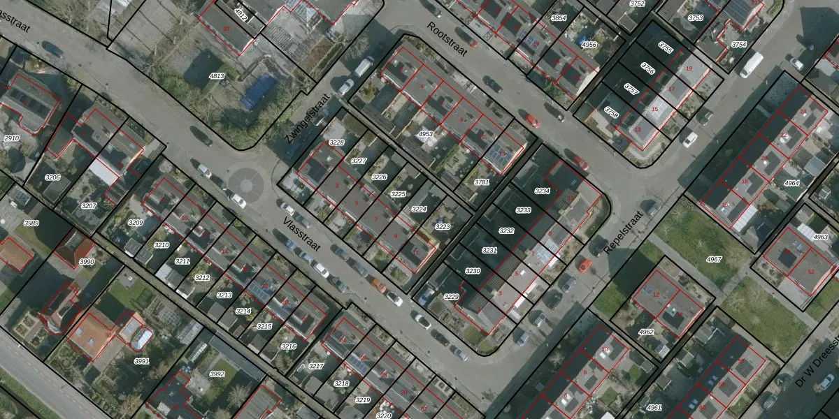 Gebruik de zoekbalk of klik op een perceel om informatie over het perceel te bekijken.