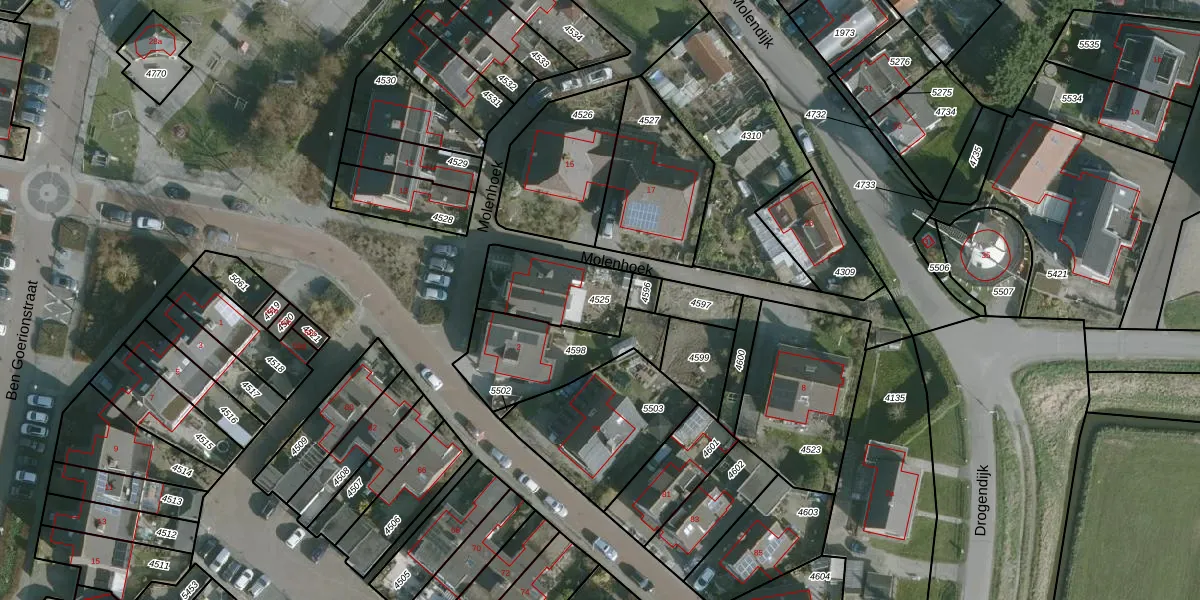 Gebruik de zoekbalk of klik op een perceel om informatie over het perceel te bekijken.
