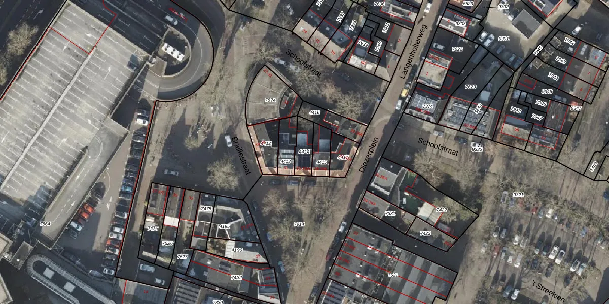Gebruik de zoekbalk of klik op een perceel om informatie over het perceel te bekijken.