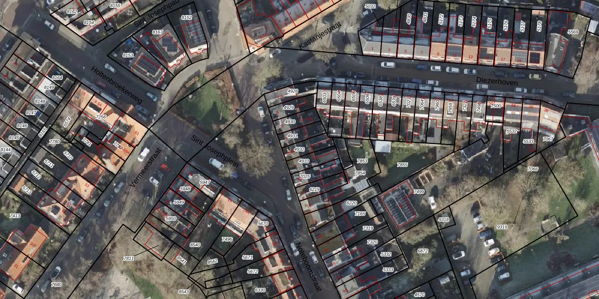 Gebruik de zoekbalk of klik op een perceel om informatie over het perceel te bekijken.