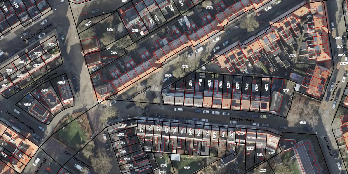 Gebruik de zoekbalk of klik op een perceel om informatie over het perceel te bekijken.