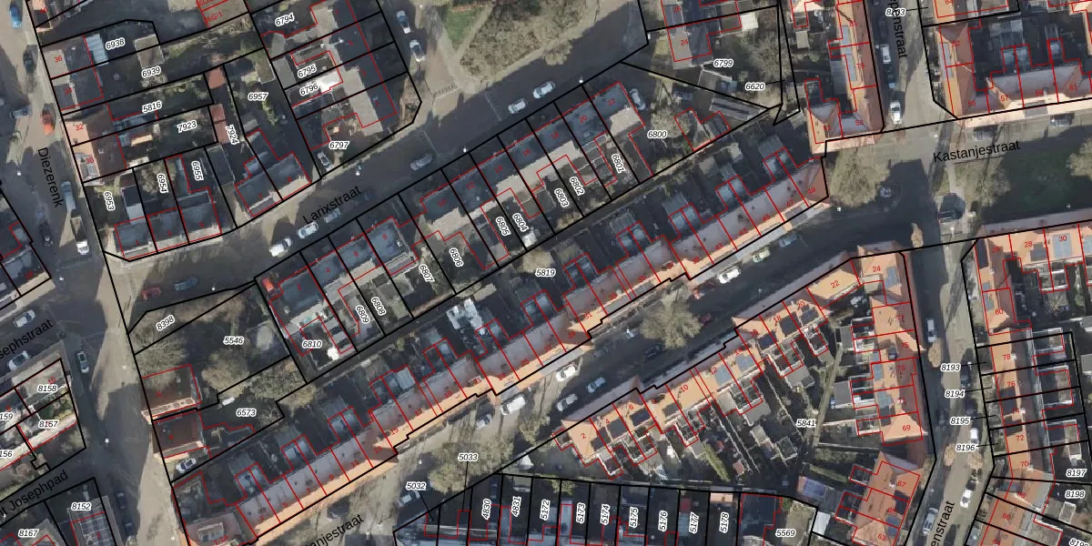 Gebruik de zoekbalk of klik op een perceel om informatie over het perceel te bekijken.