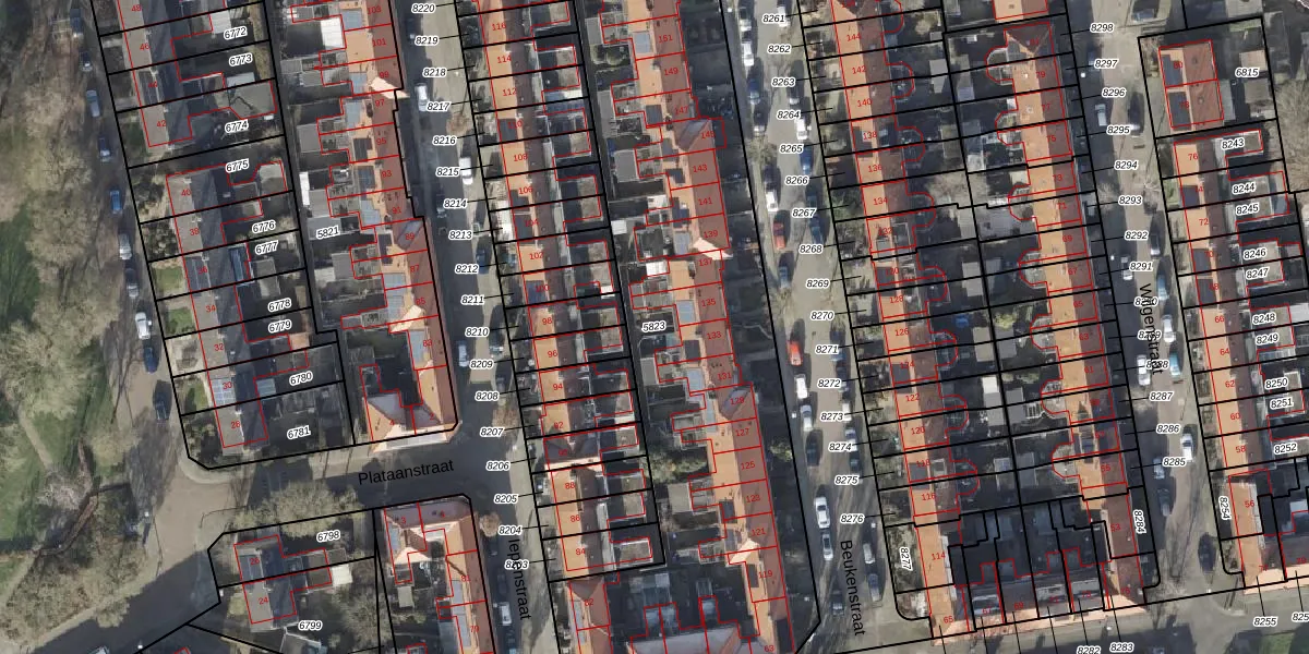 Gebruik de zoekbalk of klik op een perceel om informatie over het perceel te bekijken.