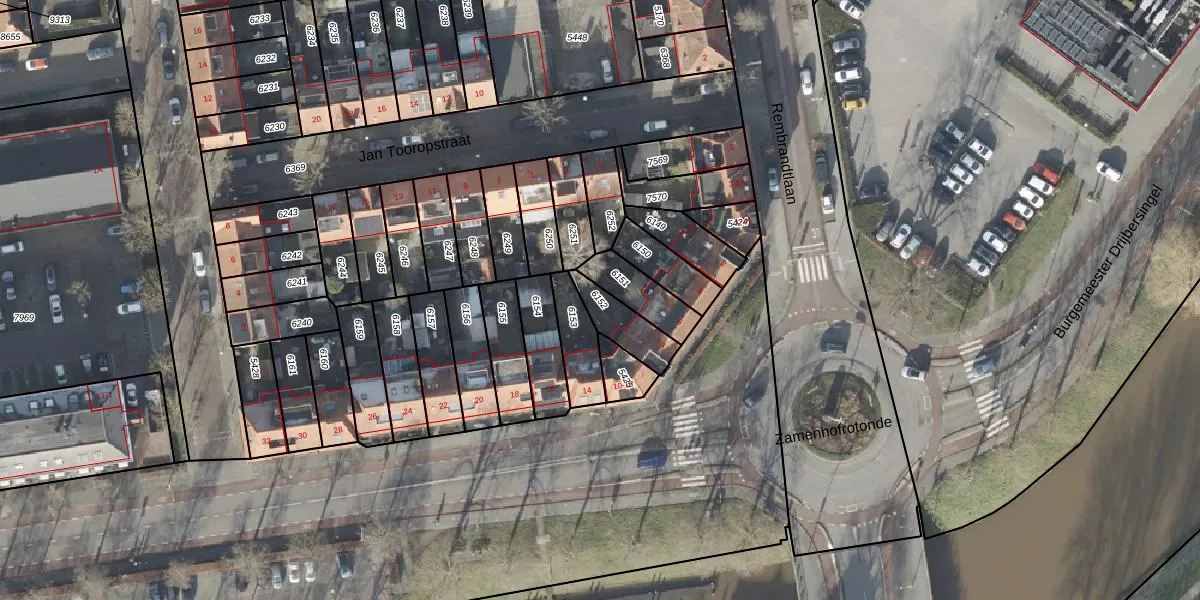 Gebruik de zoekbalk of klik op een perceel om informatie over het perceel te bekijken.