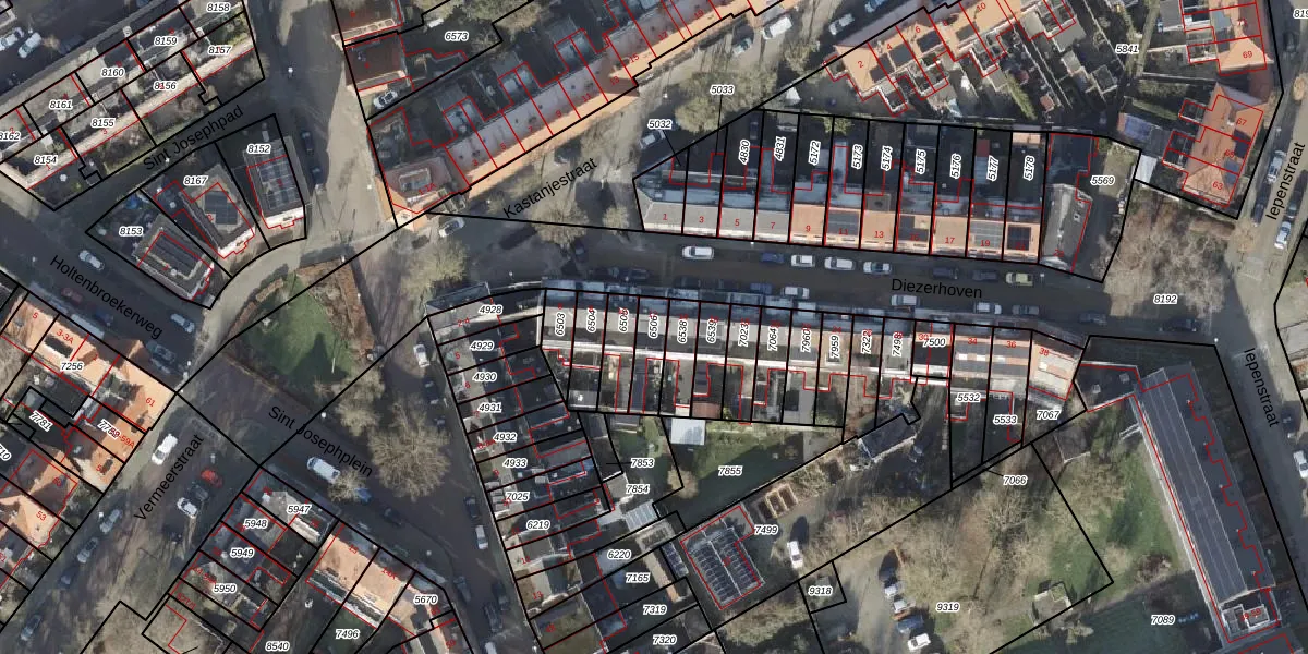 Gebruik de zoekbalk of klik op een perceel om informatie over het perceel te bekijken.