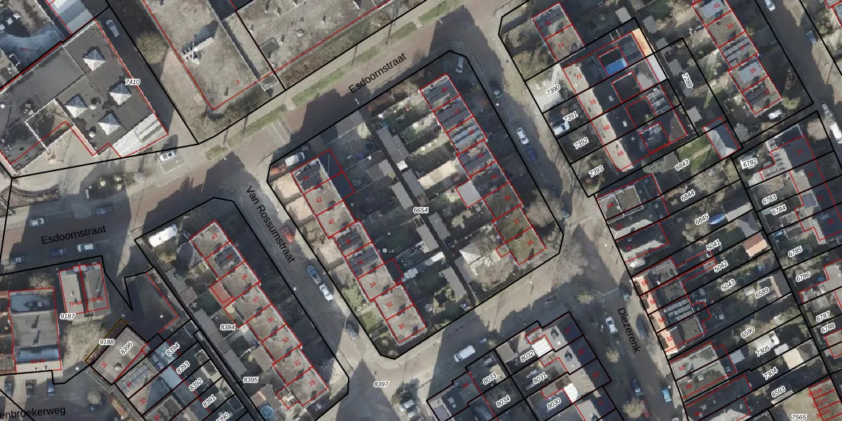 Gebruik de zoekbalk of klik op een perceel om informatie over het perceel te bekijken.
