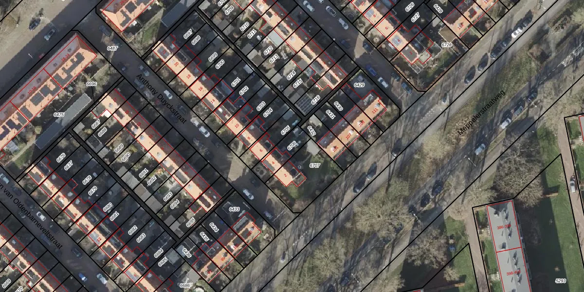 Gebruik de zoekbalk of klik op een perceel om informatie over het perceel te bekijken.