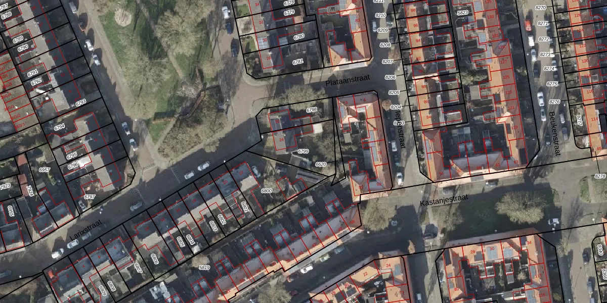 Gebruik de zoekbalk of klik op een perceel om informatie over het perceel te bekijken.