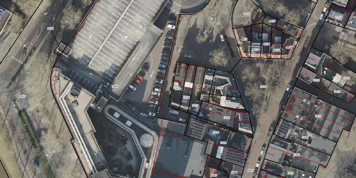 Gebruik de zoekbalk of klik op een perceel om informatie over het perceel te bekijken.