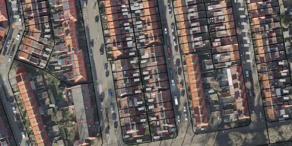 Gebruik de zoekbalk of klik op een perceel om informatie over het perceel te bekijken.