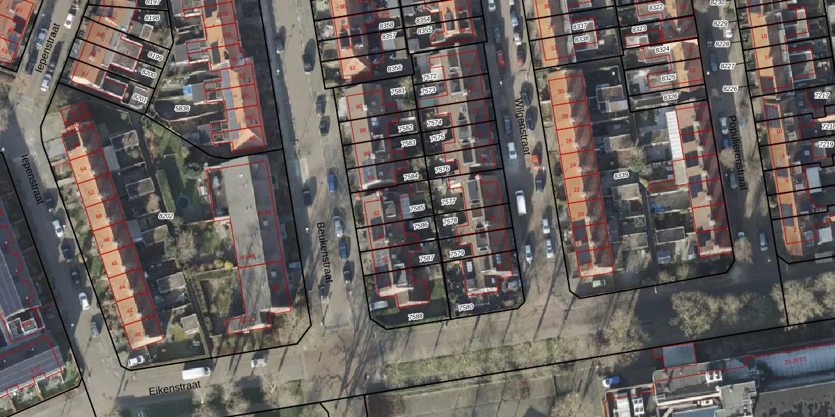Gebruik de zoekbalk of klik op een perceel om informatie over het perceel te bekijken.