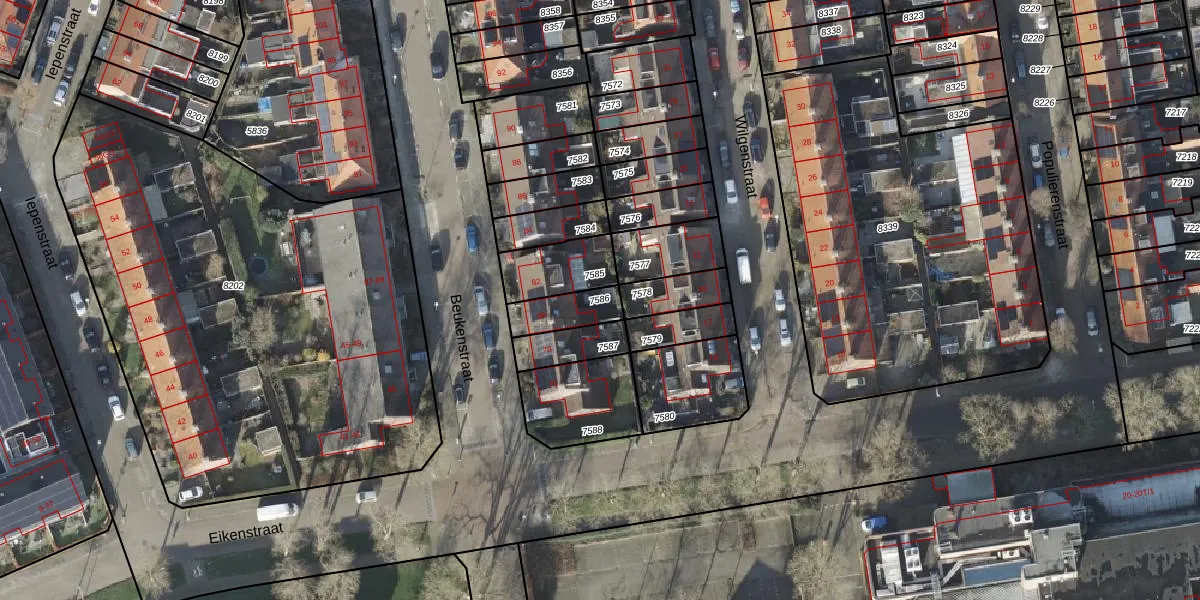 Gebruik de zoekbalk of klik op een perceel om informatie over het perceel te bekijken.