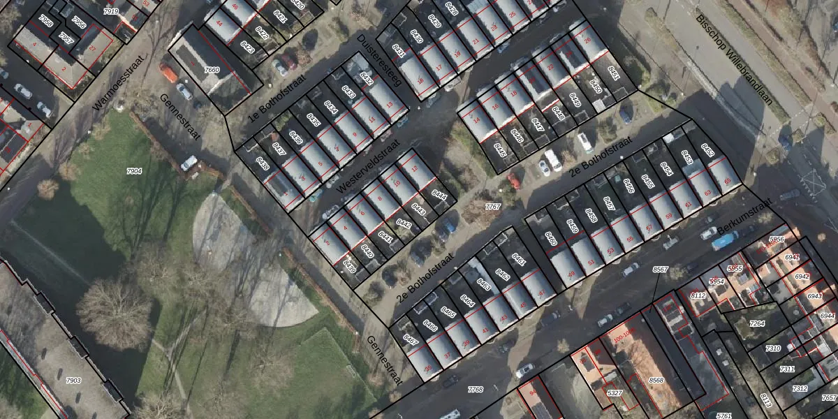 Gebruik de zoekbalk of klik op een perceel om informatie over het perceel te bekijken.