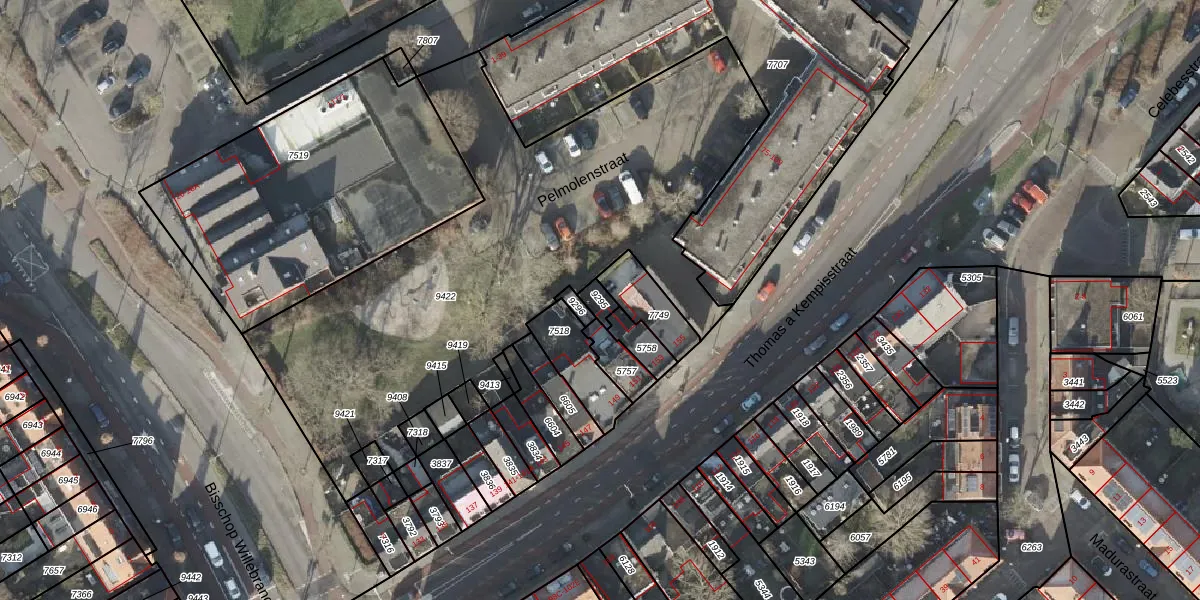 Gebruik de zoekbalk of klik op een perceel om informatie over het perceel te bekijken.