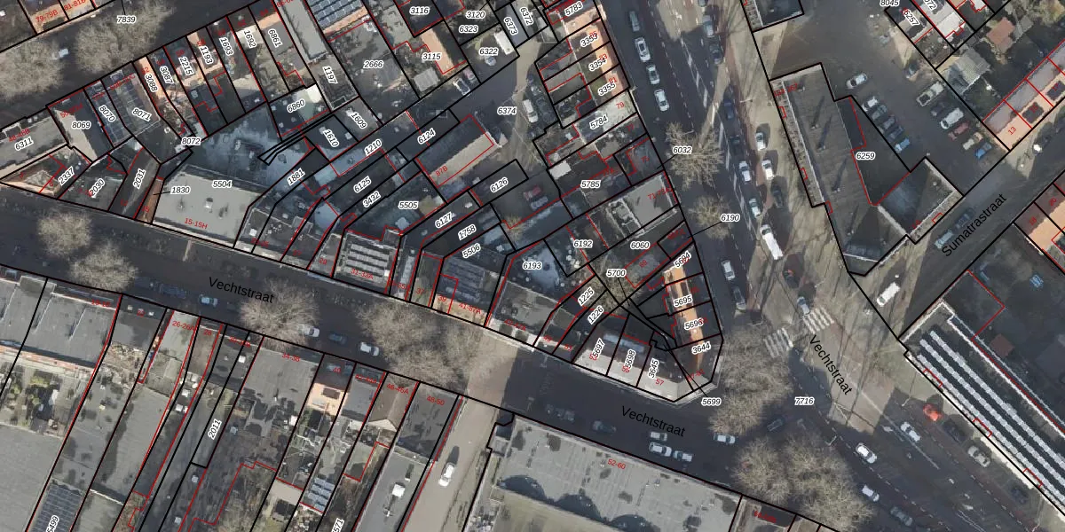 Gebruik de zoekbalk of klik op een perceel om informatie over het perceel te bekijken.