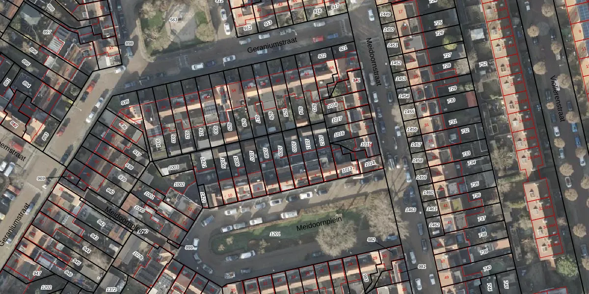 Gebruik de zoekbalk of klik op een perceel om informatie over het perceel te bekijken.