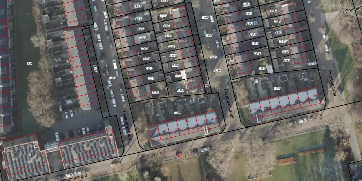 Gebruik de zoekbalk of klik op een perceel om informatie over het perceel te bekijken.