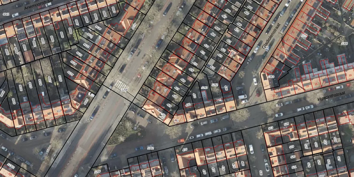 Gebruik de zoekbalk of klik op een perceel om informatie over het perceel te bekijken.