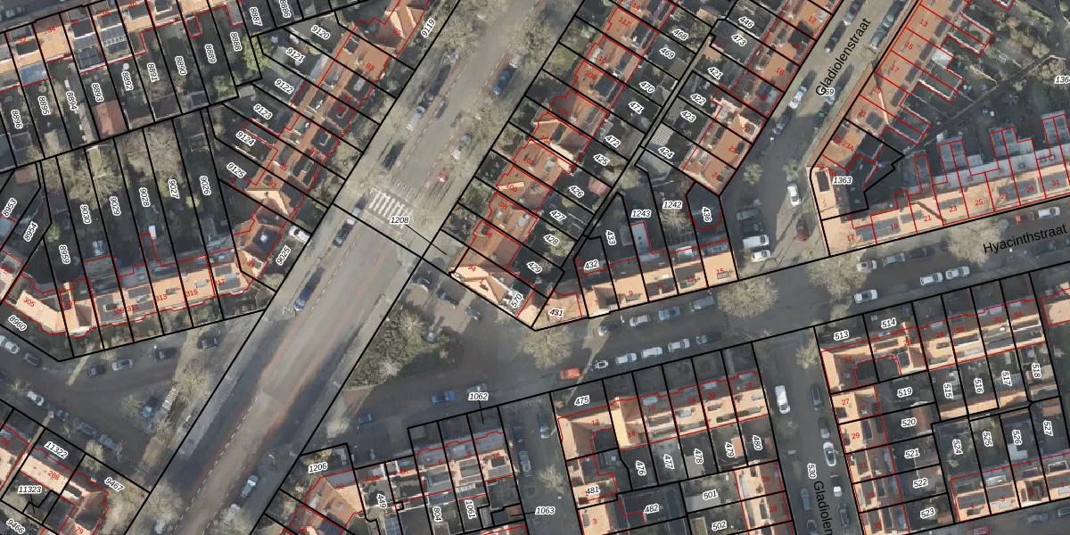 Gebruik de zoekbalk of klik op een perceel om informatie over het perceel te bekijken.