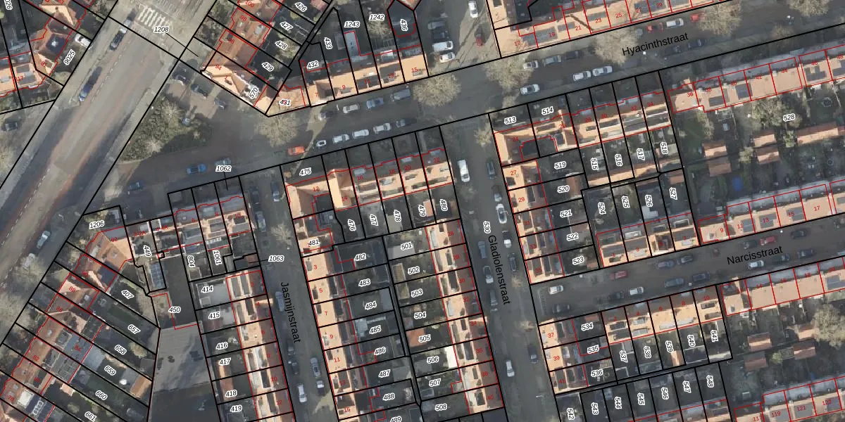 Gebruik de zoekbalk of klik op een perceel om informatie over het perceel te bekijken.