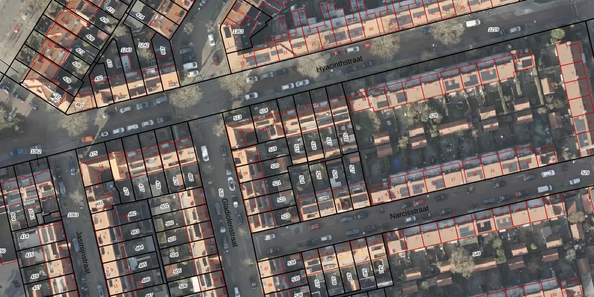 Gebruik de zoekbalk of klik op een perceel om informatie over het perceel te bekijken.