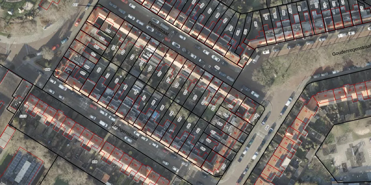 Gebruik de zoekbalk of klik op een perceel om informatie over het perceel te bekijken.
