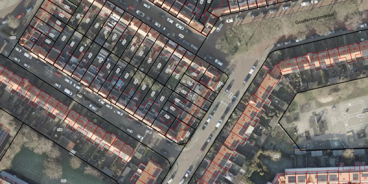 Gebruik de zoekbalk of klik op een perceel om informatie over het perceel te bekijken.