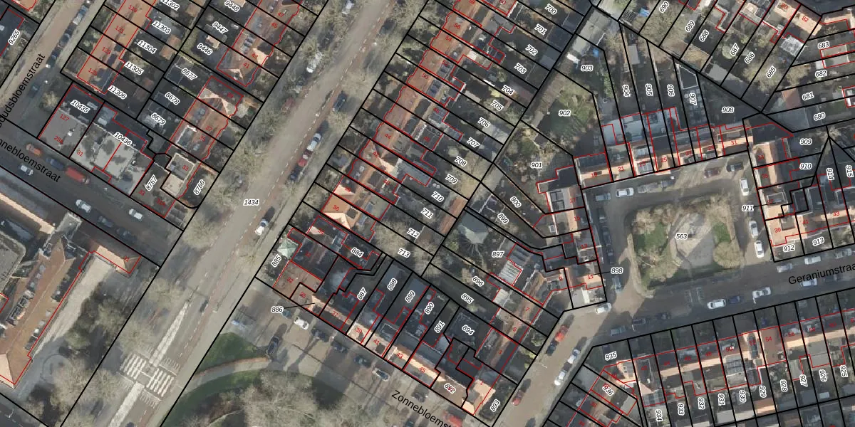 Gebruik de zoekbalk of klik op een perceel om informatie over het perceel te bekijken.