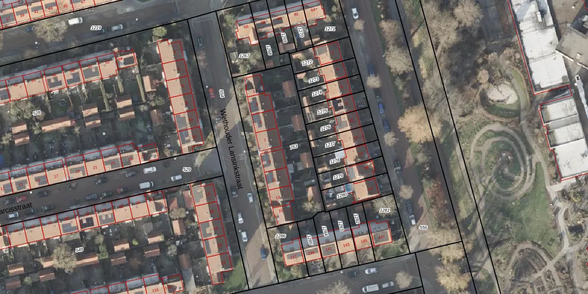 Gebruik de zoekbalk of klik op een perceel om informatie over het perceel te bekijken.