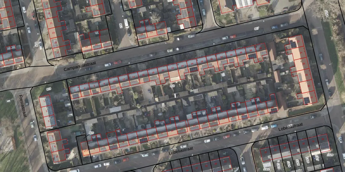 Gebruik de zoekbalk of klik op een perceel om informatie over het perceel te bekijken.