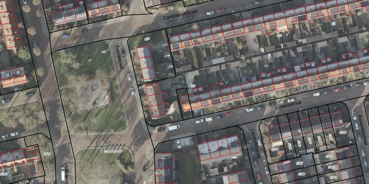 Gebruik de zoekbalk of klik op een perceel om informatie over het perceel te bekijken.