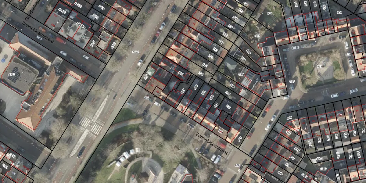 Gebruik de zoekbalk of klik op een perceel om informatie over het perceel te bekijken.
