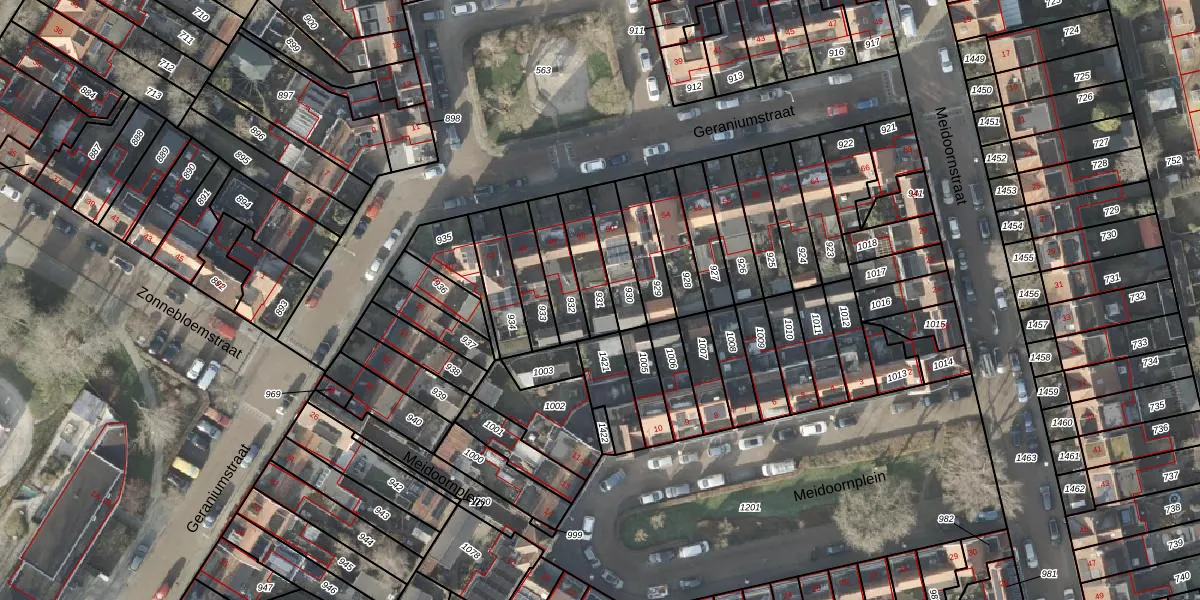 Gebruik de zoekbalk of klik op een perceel om informatie over het perceel te bekijken.