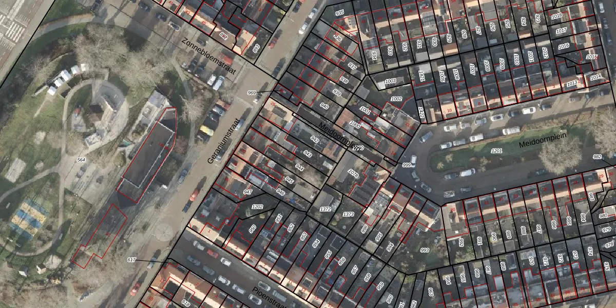 Gebruik de zoekbalk of klik op een perceel om informatie over het perceel te bekijken.